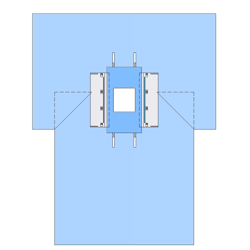 This drape comes equipped with an abdominal fenestration, absorbent reinforcement material, and armboard covers to meet the needs of the procedure.